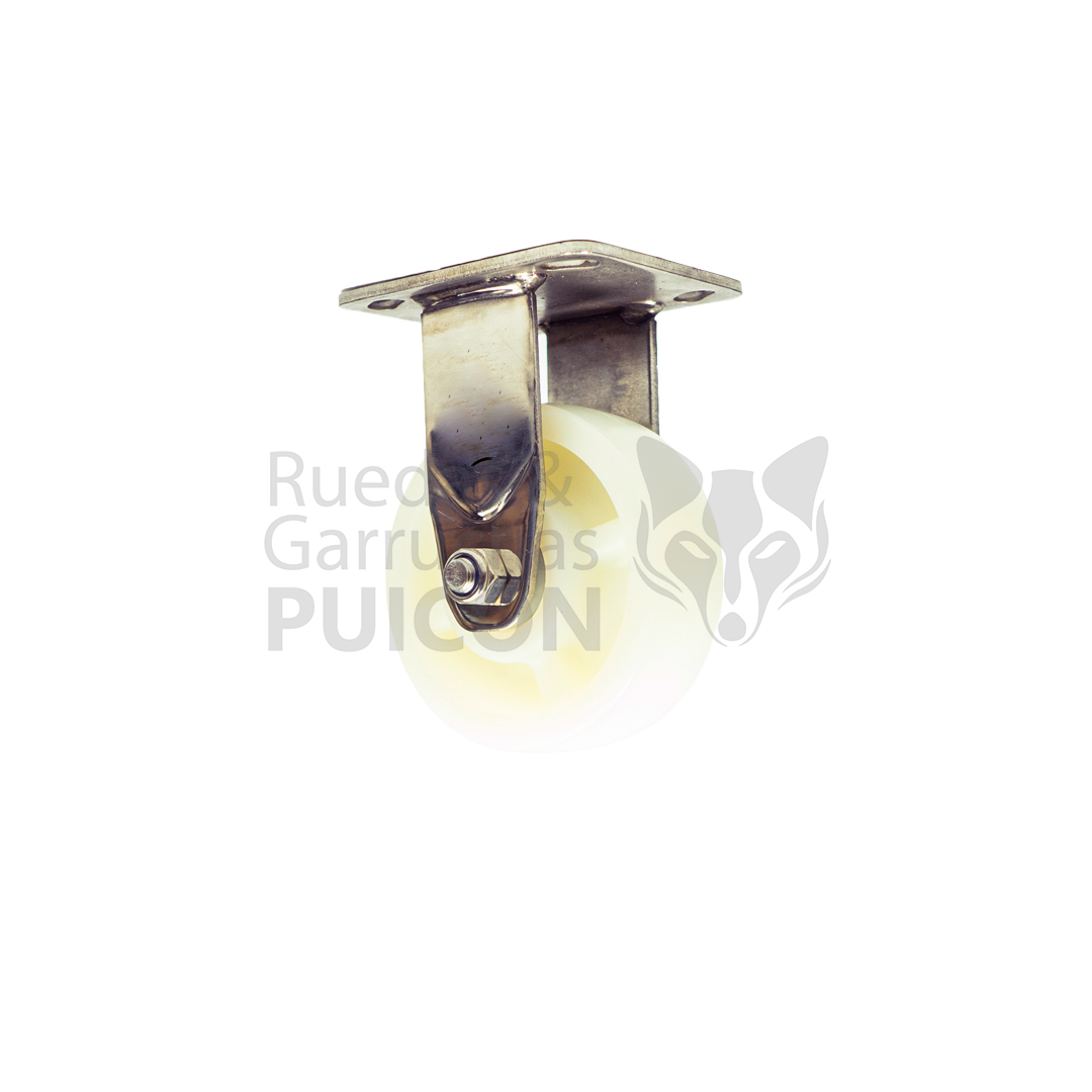 garrucha fija pesada con base acero inoxidable con rueda de nylon con dos rodajes para 400 kg cada uno